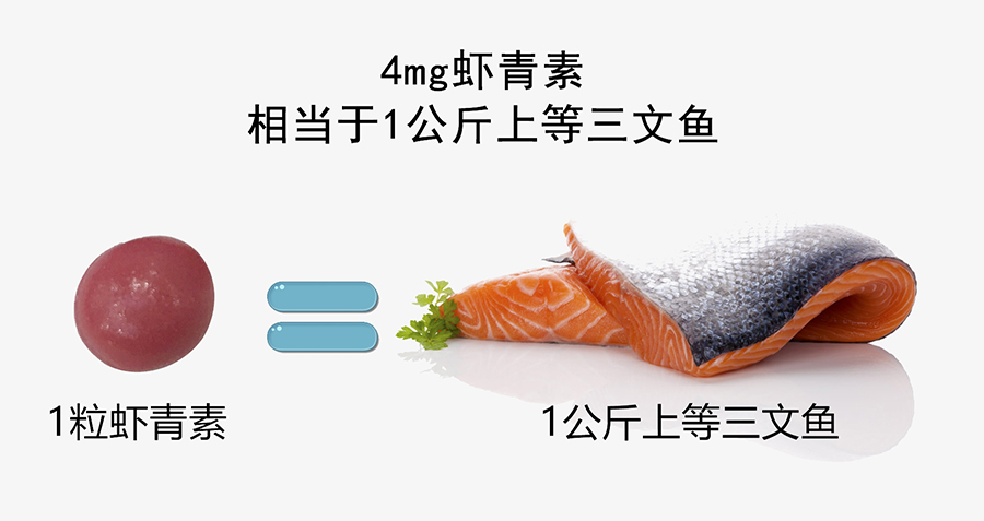 1顆蝦青素凝膠糖果含有相當于1公斤優質三文魚的蝦青素量。