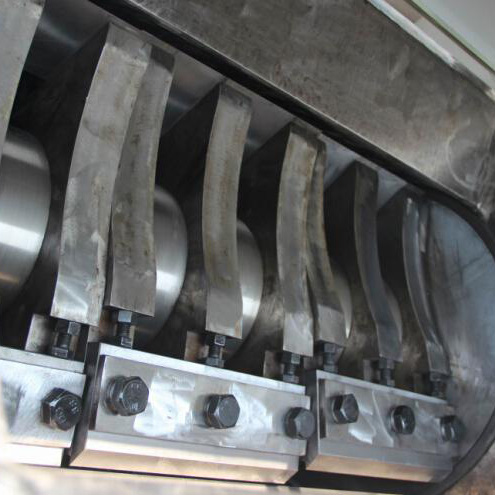 ? 爪刀型采用對(duì)稱階梯式排列,分散沖擊負(fù)荷,使大尺寸料塊破碎更省力,每片刀均可旋轉(zhuǎn)180度二次使用,減少磨刀次數(shù);